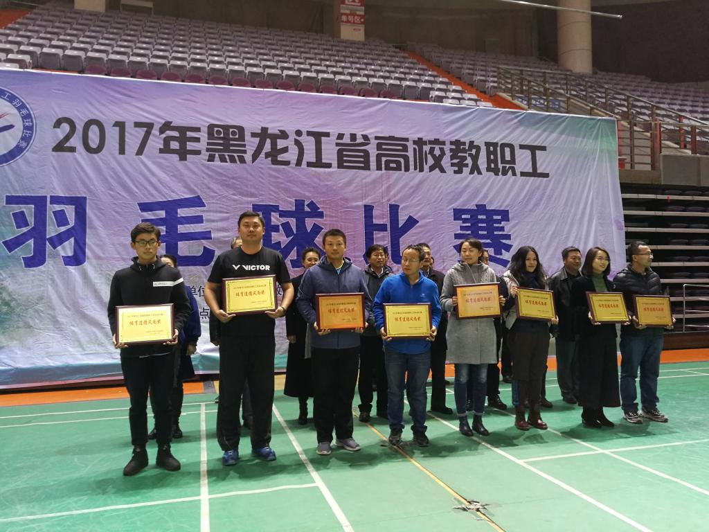11月9日、10日,由黑龙江省教育工会主办的2017年黑龙江省高校教职工羽毛球比赛在哈尔滨理工大学隆重举行,我院参赛队伍不畏强手,赛出风格,赛出水平,充分展现了良好的精神风貌和金院形象,荣获“体育道德风尚奖”。