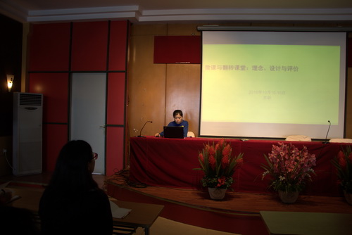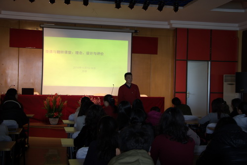 苏研老师的讲座题目为“微课与翻转课堂:理念、设计与评价。微课不是常态课的片段,也非常态课的压缩版,但可聚焦于教学的某个环节如作文评价、产出导向法的驱动环节等。微课服务于翻转课堂,翻转课堂需基于微课。翻转课堂教学能够督促学生先行学习教师编制的学案,自主观看视频,再回到课堂上内化,这个过程可以培养学生自主学习的能力,最终实现分层次教学。