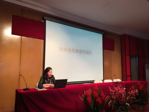 刘晓婷老师的讲座题目为“教师角色和读写设计”。教师角色转换是新时代、新形势对教师的必然要求。教师的职责现在已经越来越少地传递知识,而应该越来越多地激励思考;除了正式职能以外,教师将越来越成为一位顾问、一位交换意见的参与者。读写设计则是以课文为范本,进行转写、改写等写作练习,将阅读与写作融为一体,建立学生积极参与的英语读写课堂。