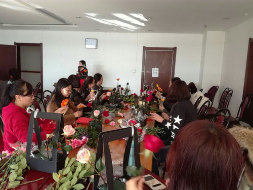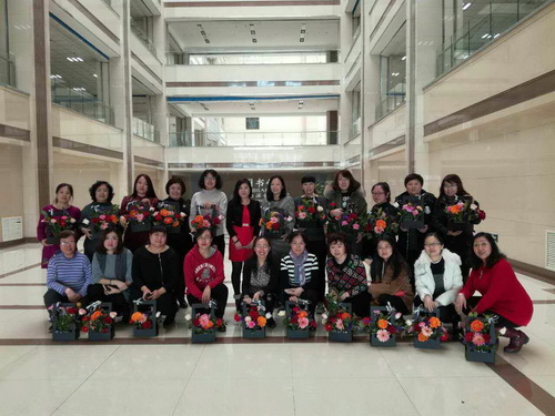 为庆祝即将来临的“三•八”妇女节,陶冶教工情操,展示教辅分工会女教工美的一面,用绚丽多彩的鲜花装点生活。3月3日中午,教辅分工会邀请专业的花艺师现场为女教工进行花艺培训。