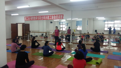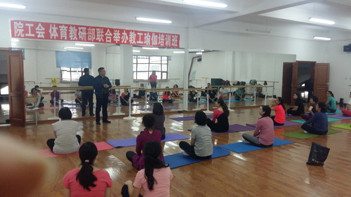 为贯彻落实《黑龙江省全民健身实施计划》文件精神,推动全民健身运动,提高我院教职工身体素质,增进教职工身心健康,由院工会和体育教研部联合举办的教职工瑜伽培训班,于4月17日中午,在新体育场117室举行了开班仪式。院工会主席王忠国、工会副主席张宝利出席了开班仪式。